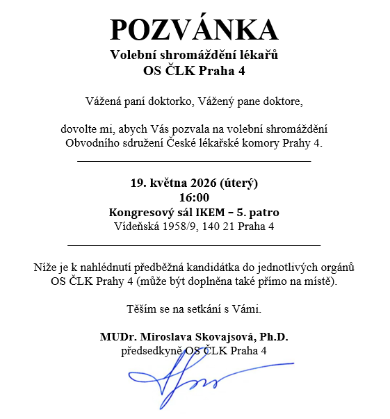 Představenstvo OS ČLK Praha 4 se rozhodlo přispět lékařům, členům OS ČLK Praha 4 na zahraniční stáž. Podmínky o příspěvek se dozvíte ZDE